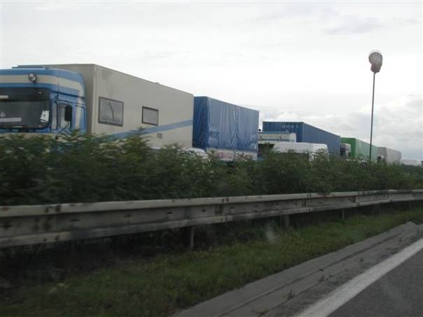 takhle nějak vypadá dálnice D1 po vstupu do EU.Parkoviště.Došlo patrně k nějakému