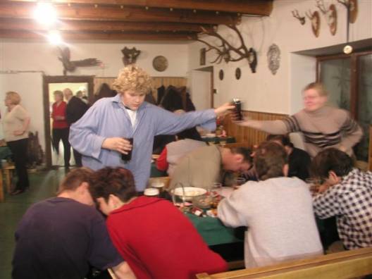 sbíral hosty.Jelo se asi 8km do hospody-hájovny.